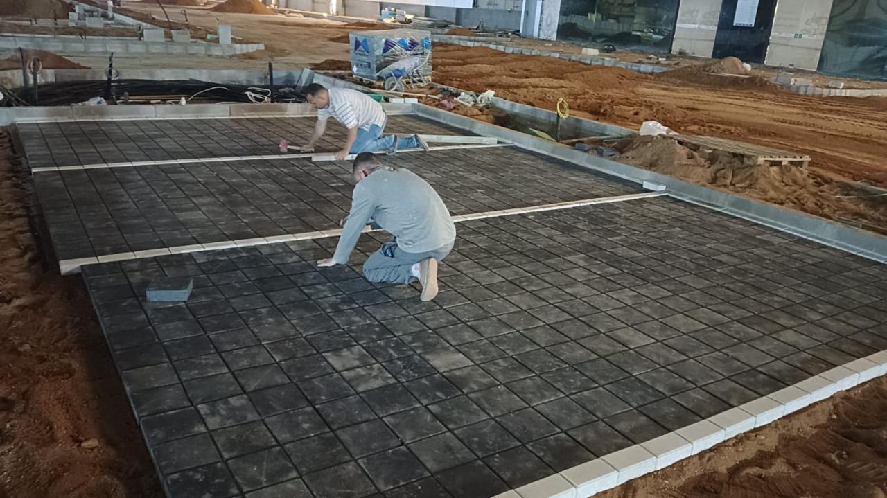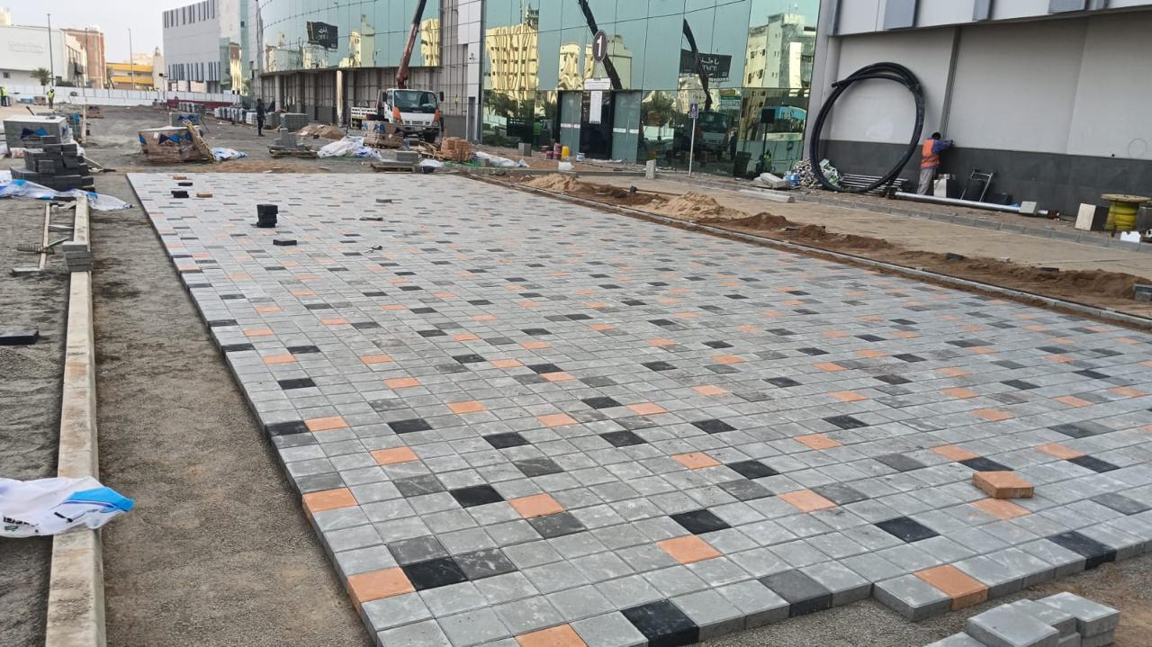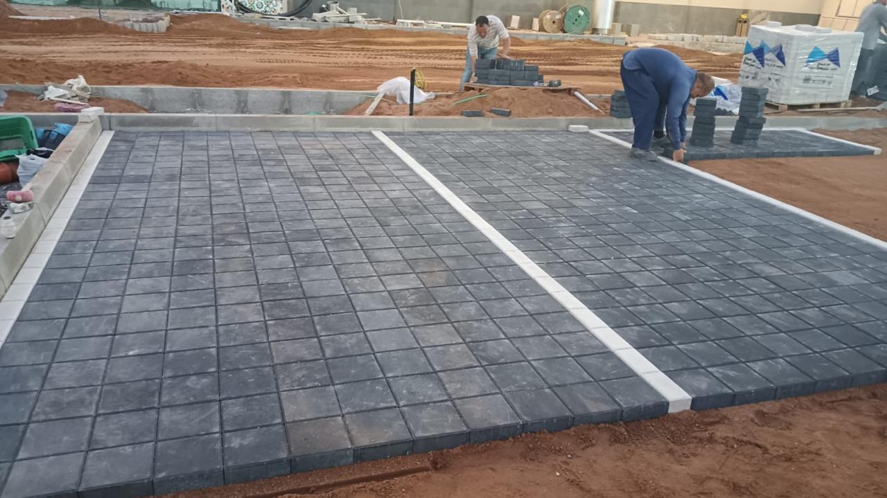 - البدء في تنفيذ أعمال البردورات وتركيب الانترلوك