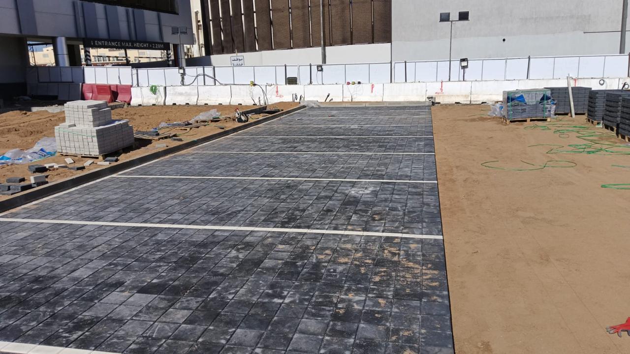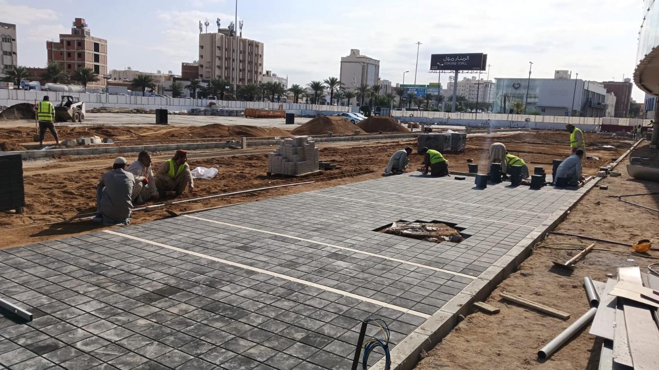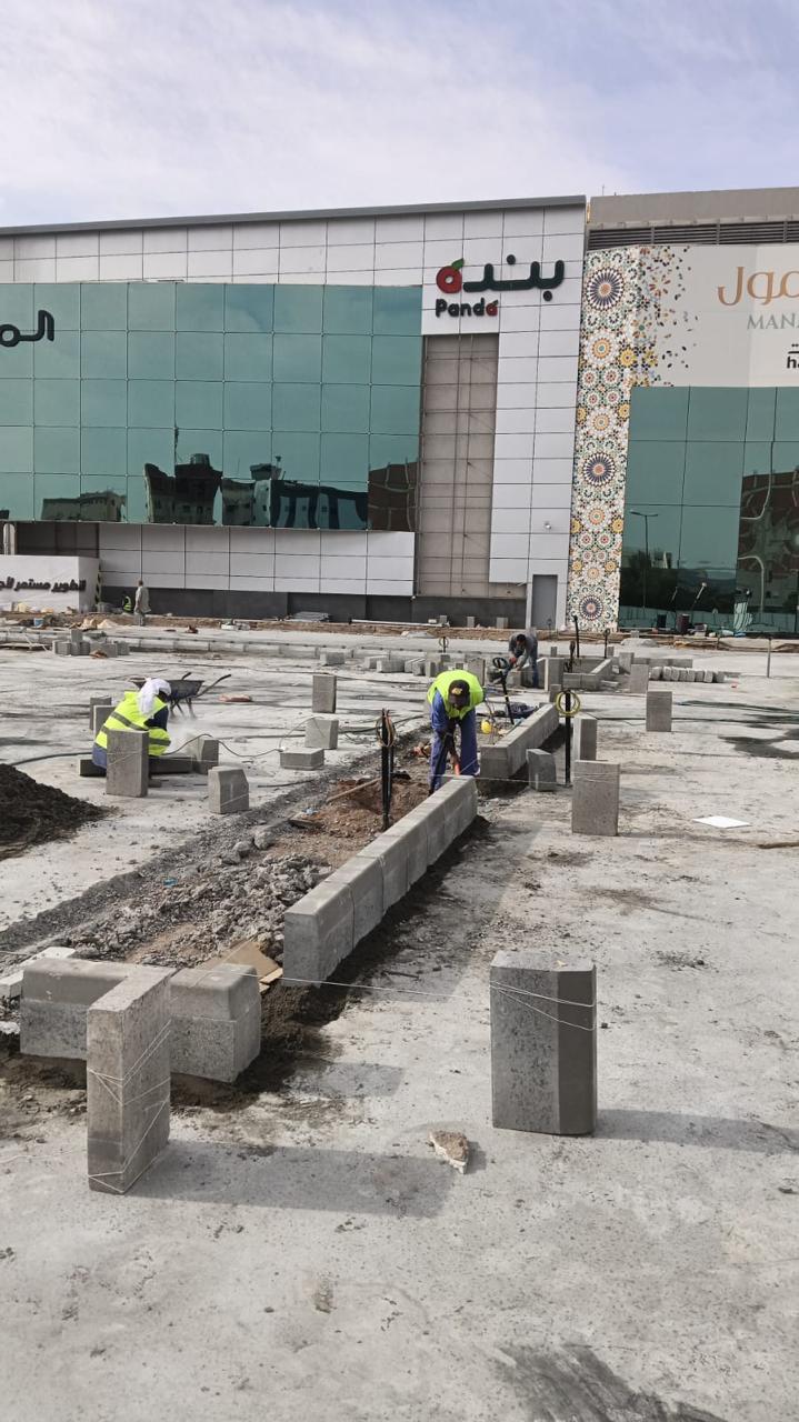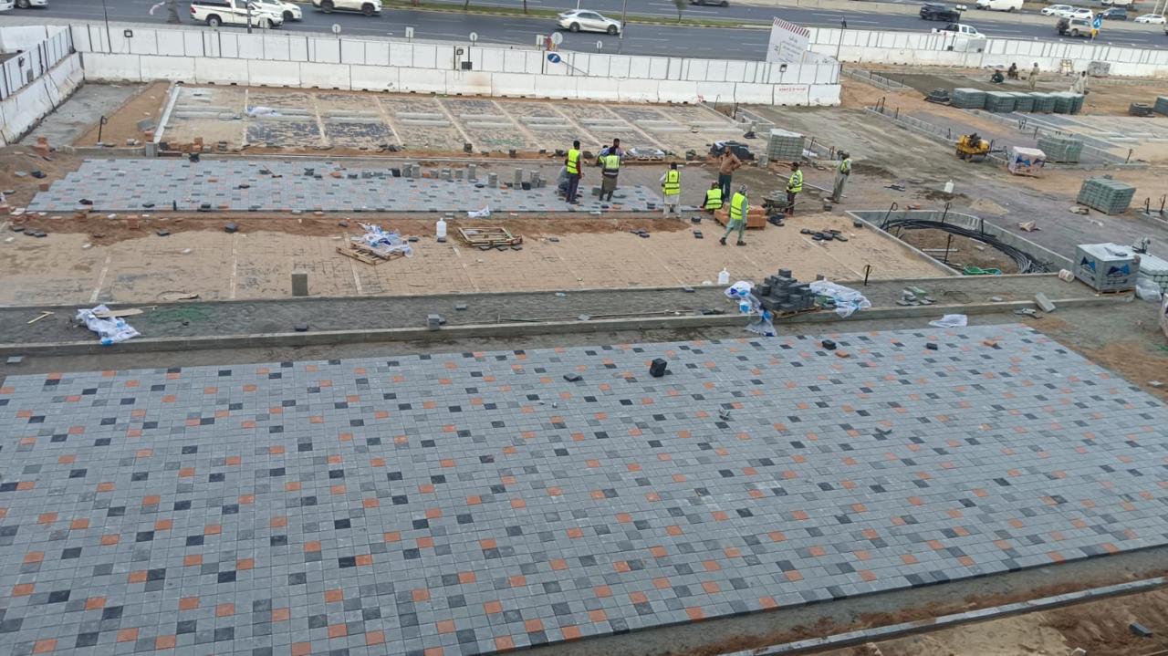 - البدء في تنفيذ أعمال البردورات وتركيب الانترلوك